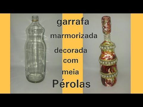 GARRAFA MARMORIZADA DECORADA COM PÉROLAS - RECICLADO N.25